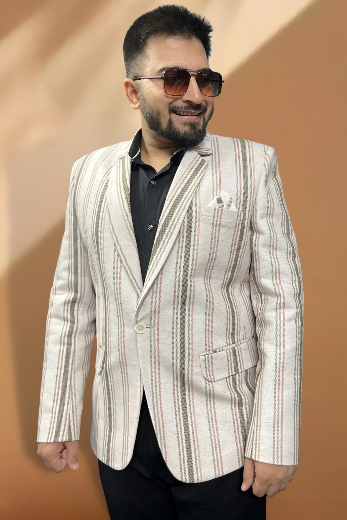 Mens Wedding Function Readymade Cream Color Blazer In Jacquard Fabric