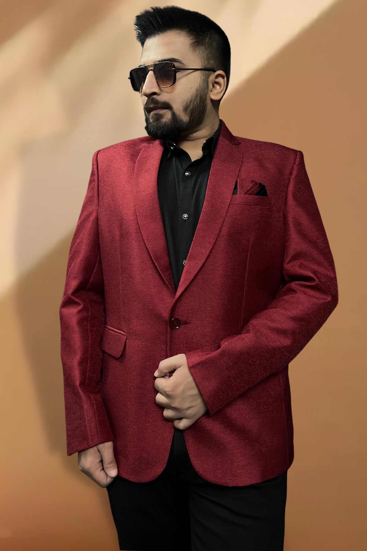 Red Gorgeous Jacquard Fabric Reception Wear Readymade Blazer For Men