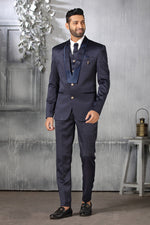 Sober Satin Coat Suit In Navy Blue Color