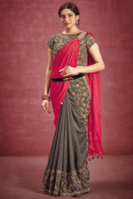 Grey Color Crepe Fabric Coveted Saree With Embroidered Work