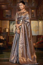 Grey Color Kanjivaram Silk Fabric Glorious Saree