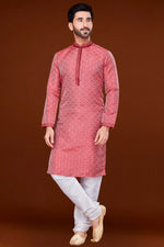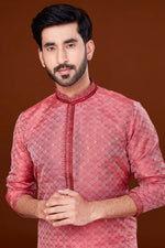 Jacquard Fabric Pink Color Patterned Kurta Pyjama For Men