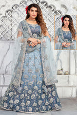 Net Fabric Function Look Awesome Lehenga In Blue Color