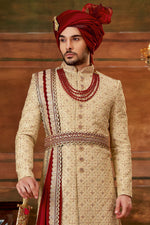 Golden Color Art Silk Fabric Hand Work Shrewani
