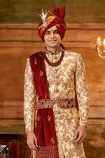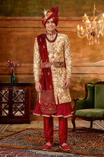 Stunning Golden Color Hand Work Shrewani