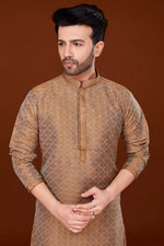 Beguiling Chikoo Color Jacquard Fabric Kurta Pyjama For Men