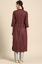 Cotton Fabric Maroon Color Kurti In Intricate Casual Look