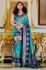 Cyan Color Jacquard Work On Banarasi Silk Stylish Saree