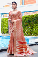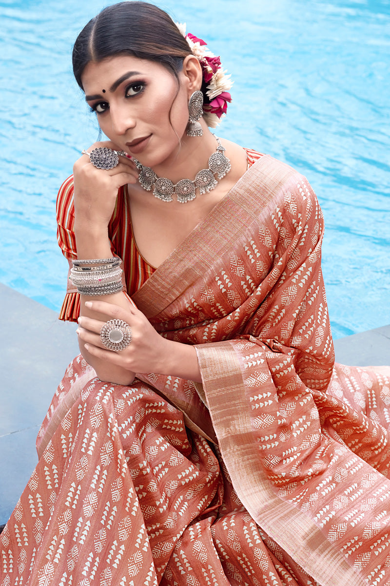 Engaging Weaving Work On Orange Color Banarasi Art Silk Saree
