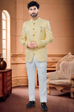 Engaging Yellow Readymade Jacquard Jodhpuri Suit