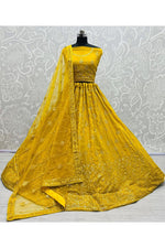 Georgette Fabric Entrancing Lehenga In Yellow Color In Wedding Wear
