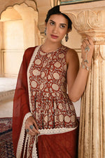 Imposing Cotton Printed Palazzo Suit In Rust Color