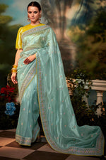 Light Cyan Color Inventive Saree In Art Silk Fabric