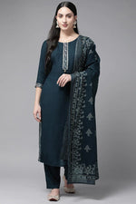 Rayon Bewitching Top Bottom Dupatta In Teal Color